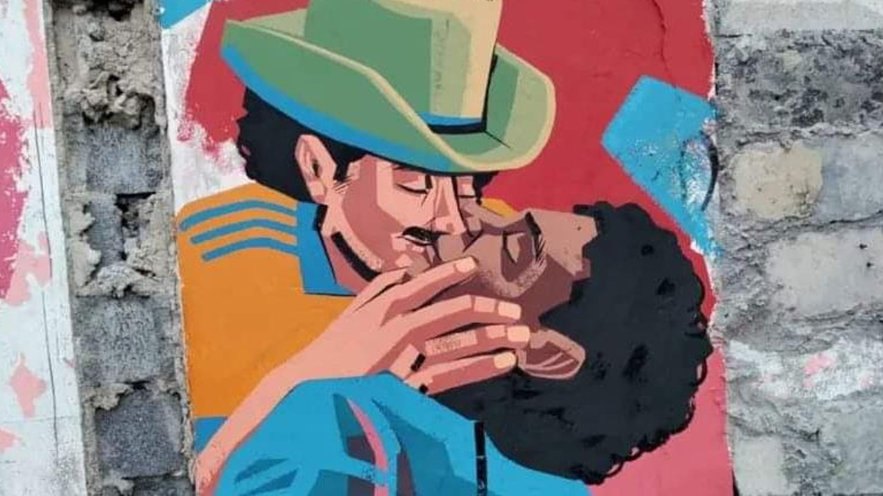Después de que vandalizaron una de las pinturas de Alejandro Guerrero (Chanate) que tenía un beso gay, el artista reintervino el muro para dejar un nuevo y contundente resultado. El arte es resistencia y esta historia es la prueba.