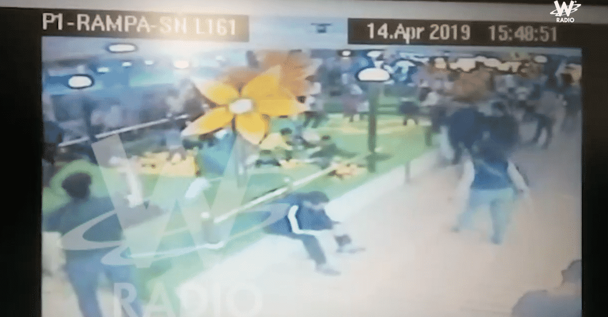 En el video de seguridad —de muy mala calidad— se muestra el área de juegos para niños. En la esquina superior derecha está la pareja gay abrazada. No se aprecia si estaban cometiendo «actos indebidos» como lo señalaron sus agresores. Es a partir del segundo 55 cuando Pedro se ubica a un costado de ellos e inicia con la agresión verbal. Acto seguido empiezan los empujones, sin importar la gran cantidad de niños y personas que transitan por esa zona.