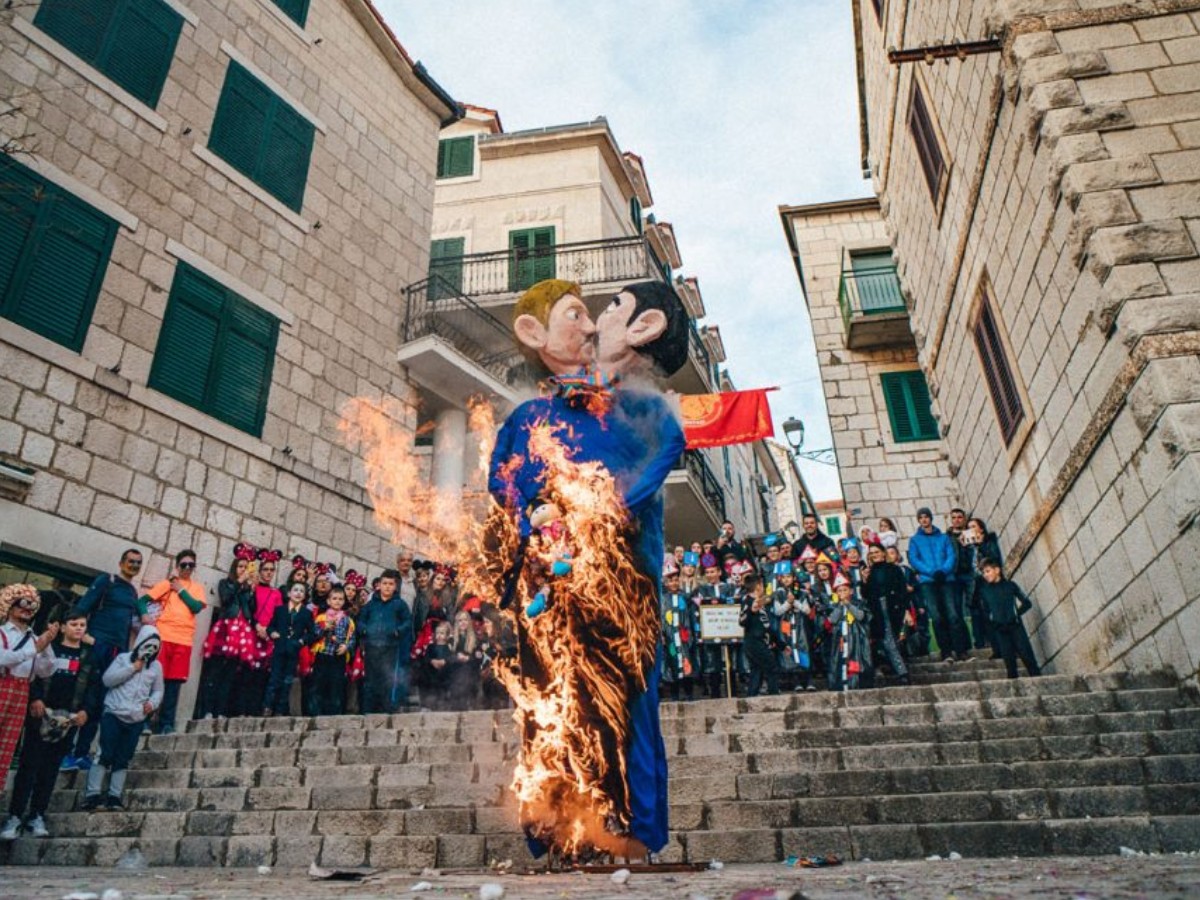 Imotski es una pequeña ciudad en Croacia que el 23 de febrero celebró el carnaval Bakova povorka. Como parte de sus tradiciones, los oriundos del lugar construyen esculturas de papel que están relacionadas con temas de la actualidad. Luego de pasearlas por la ciudad en un gran desfile público, estas efigies son quemadas como parte de la celebración. MIRA CÓMO UN ADOLESCENTE INTENTÓ PARAR UNA MARCHA LGBT+ CON UN CRUCIFIJO.