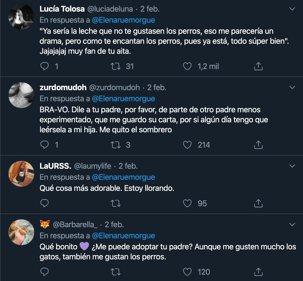 En pocos días, el tweet de Elena se volvió tan viral que alcanzó más de 9 mil retweets y casi 60 mil likes. Cientos de usuarios le respondieron a Elena felicitándola por tener un padre tan amoroso y abierto.
